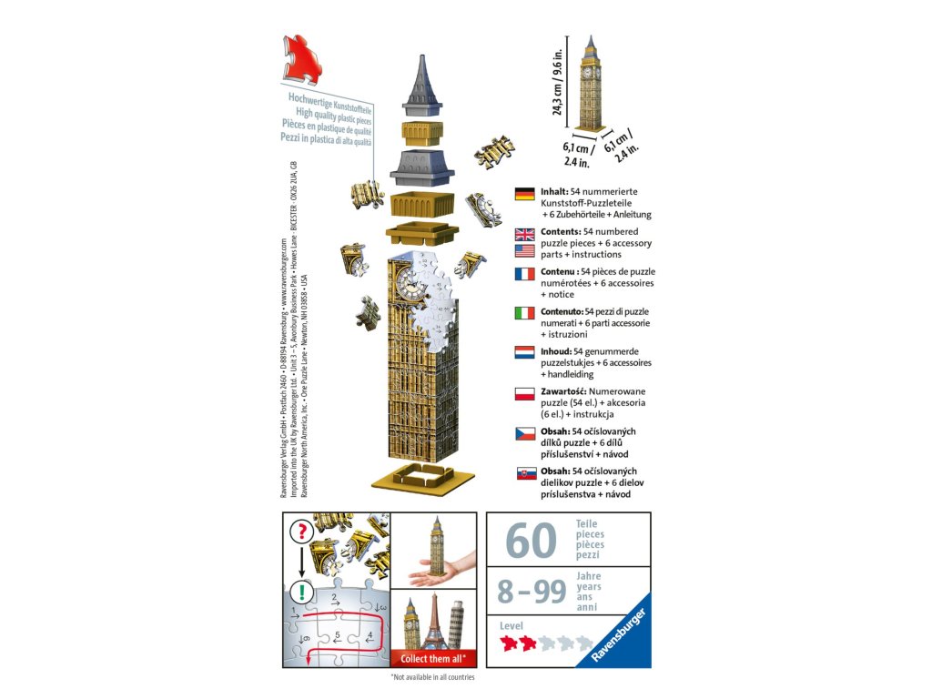 Sestavte si kouzelnou mini verzi stavby Big Ben pomocí unikátních ohebných, sklopných a hladce zapadajících dílků puzzle! Dokonalá stabilita bez nutnosti lepidla!Doplňkové parametry
