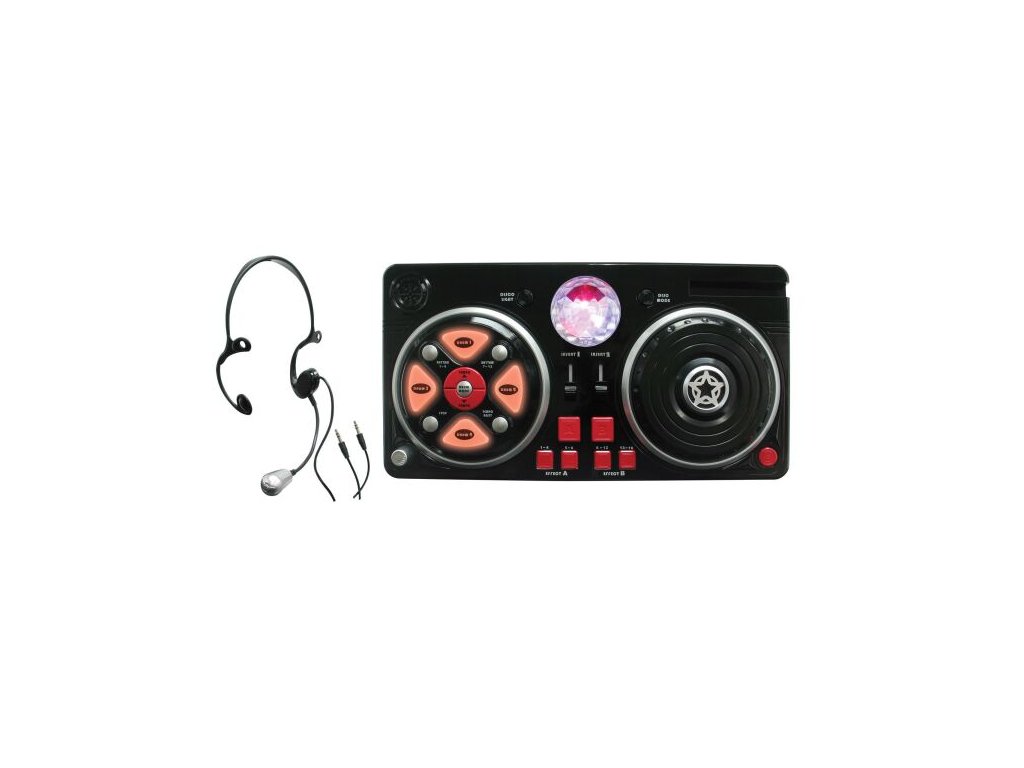 Mixážní pult s hlavovým mikrofonem. Rozměry 39x20 cm. Světelné a zvukové efekty. 4xAA baterie součástí. Svítící disco koule, 6 efektů disku, 16 efektů, 12 rytmů, 12 bubnů, nastavení tempa, hlasitosti, stojánek na mobil/mp3 přehrávač, automatické vypnutí pro šetření energie. Kabel pro připojení mobilu/mp3 přehrávače.Doplňkové parametry