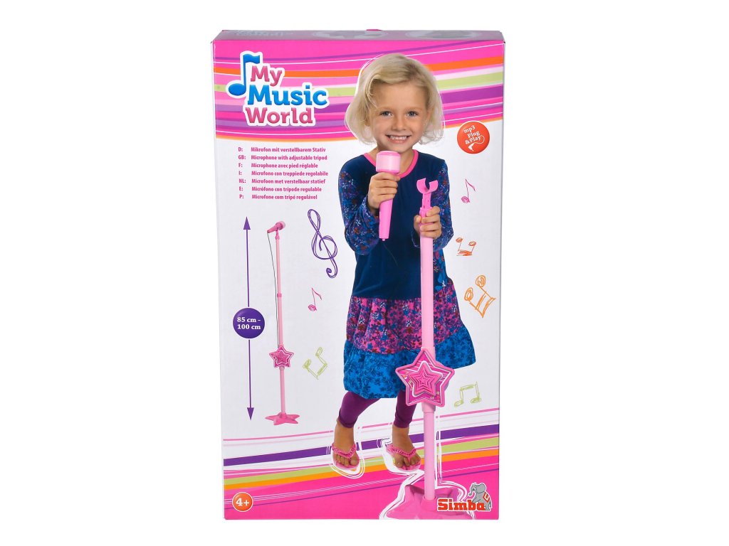 Růžový elektronický mikrofon se stojanem a se vstupem pro MP3. Nastavitelná výška 85-115cm.Doplňkové parametry