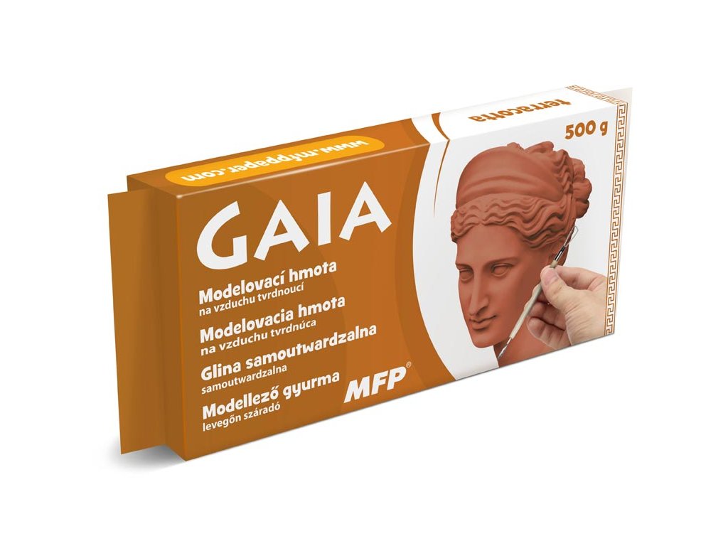 Modelovací hmota Gaia 500g terracotta - patří mezi samotvrdnoucí modelíny na vzduchu. Tato modelovací hmota je určena k okamžitému použití. Má vynikající tvárnost a je vhodná pro všechny modelovací techniky. K vytvrdnutí hotového výrobku je třeba cca 24 hodin. Po té můžete nanášet barvu nebo glazuru. Modelínu udržujte ve vzduchotěsném obalu, aby nedocházelo k jejímu vysychání. Vypratelná. BARVA: terracotta. HMOTNOST: 500g. VAROVÁNÍ: Nevhodné pro děti do 3 let, hrozí udušení malými částmi! Používejte pod dohledem dospělých osob. Uvedená cena je za 1 ks. Rozměr: 180mm x 75mm x 20mm (Š x V x H).Doplňkové parametry