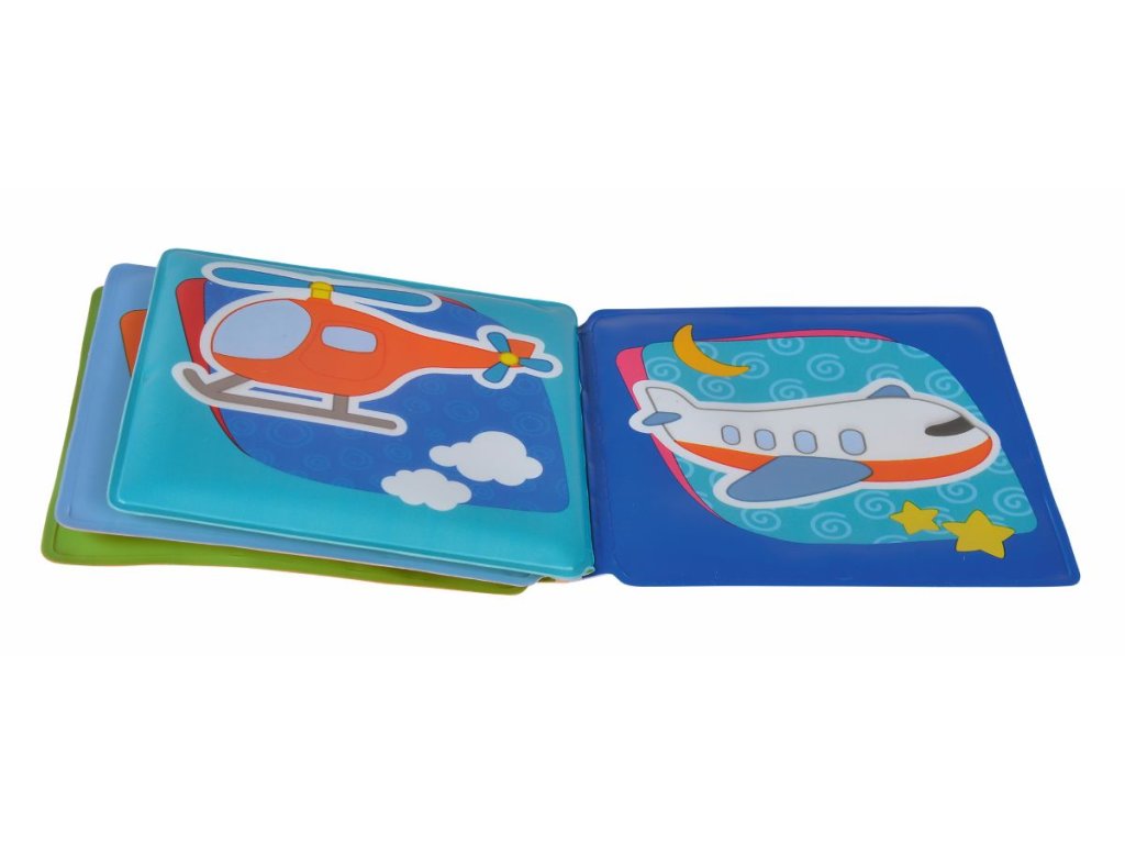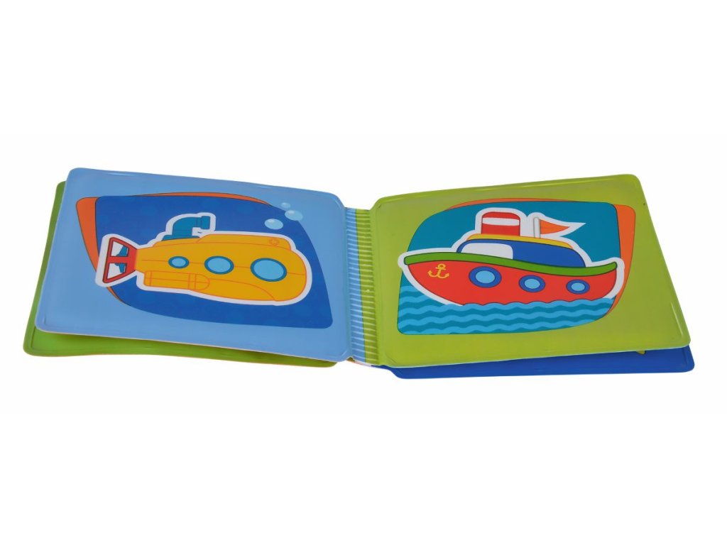 Omyvatelná knížka pro nejmenší s "pískátkem" na přední straně. Má celkem 8 stran s obrázky dopravních prostředků. Rozměr zavřené knížky: 10 x10 cm.Doplňkové parametry
