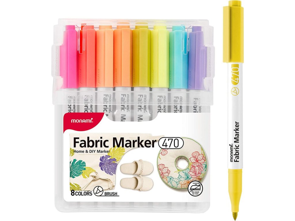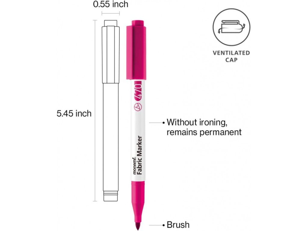 Barevný popisovač v pastelových barvách MONAMI 470 pro světlý textil. Rychleschnoucí, bez nutnosti zažehlení. Unikátní štětcový hrot, ventilační víčko, zářivé pastelové barvy. Toto zboží máme skladem, připraveno k odeslání.Barevný popisovač na světlý textil