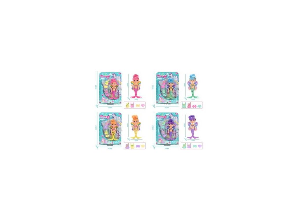 Mořská víla s oblečkem. Velikost 13 cm. 4 varianty ploutve - růžová, zelená, žlutá, fialová. Požadovanou varianktu uveďte prosím do poznámky. Nebude-li uvedeno, zasíláme dle skladových možností. Pro děti od 3 let.Doplňkové parametry