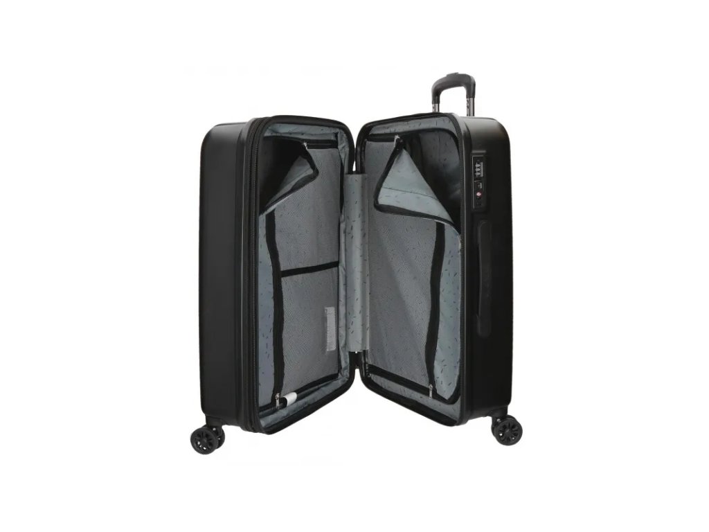 • střední a velký kufr lze pomocí bočního zipu objemově (5cm na šířku) zvětšit - obzvláště praktická funkce při cestování