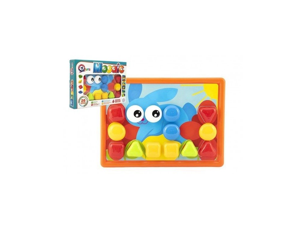 Mozaika pro nejmenší, velikost kolíčku 35 mm a 6 barevných šablon (předloha k umisťování kolíčků). Barevné kloboučky, které se skádají na podkladovou desku s předtišněným motivem mají různé tvary, dokážou vytvořit nádherné obrázky. Díky velkým otvorům a kolíčkům nebudou mít ani ti nejmenší problém s umísťováním. Mozaika zábavnou formou rozvíjí logické myšlení, rozvíjí manuální dovednosti a představivost, učí základní barvy, cvičí koncentraci. Je skvělým příkladem toho, jak snadno se děti učí formou hry. Vhodné pro děti od 2 let.Doplňkové parametry