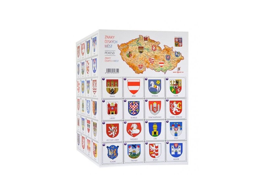 Pexeso s obrázky znaků Českých měst k vystřižení.Doplňkové parametry
