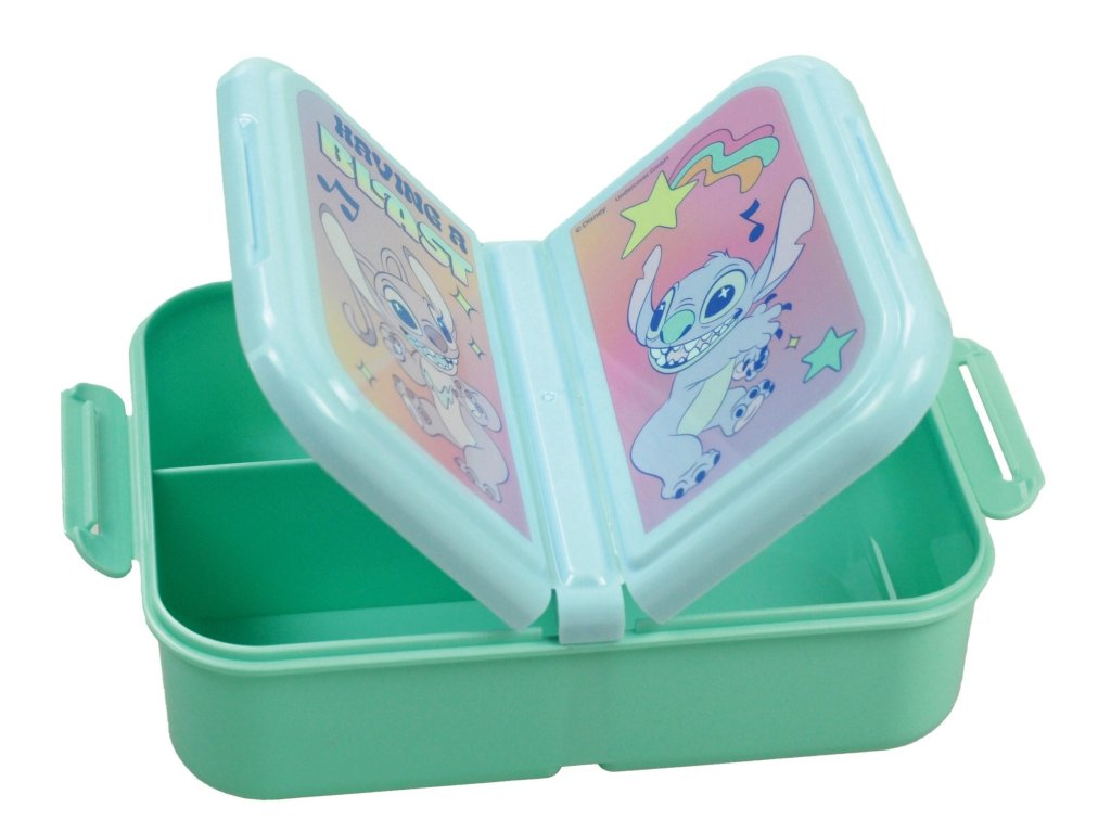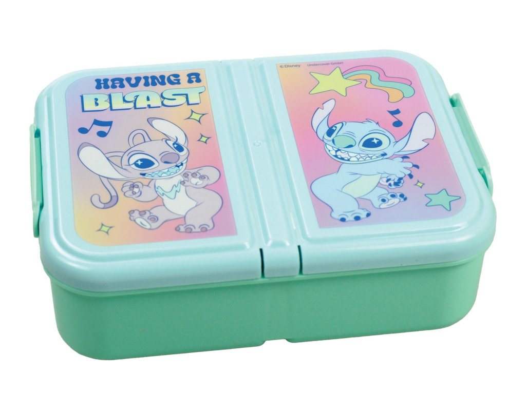 Tří - přihrádkový box na svačinu s motivem Lilo a Stitch. Materiál: plast. Rozměry: 18 x 13 x 4 cm. Objem: 900 ml. Bez BPA, zdravotně nezávadný. Výrobce: Gimsa. Gimsa: Giovas S.A. Konteri str. 22, Piraeum, Greece info@gimsa.grDoplňkové parametry