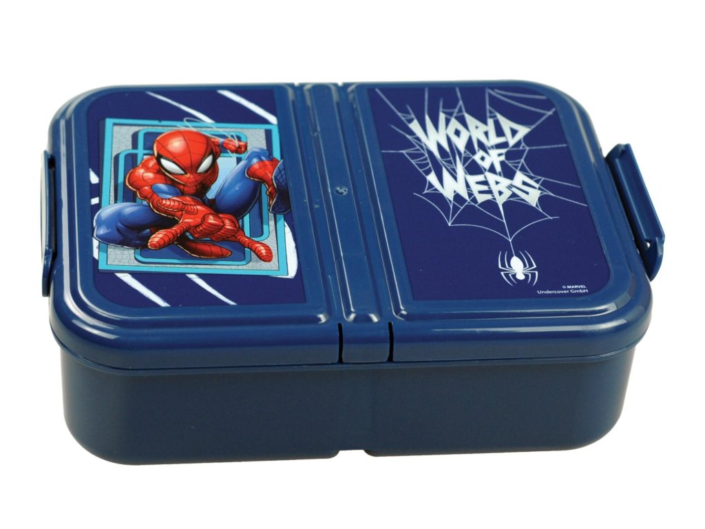 Tří - přihrádkový box na svačinu s motivem Spiderman. Materiál: plast. Rozměry: 18 x 13 x 4 cm. Objem: 900 ml. Bez BPA, zdravotně nezávadný. Výrobce: Gimsa. Gimsa: Giovas S.A. Konteri str. 22, Piraeum, Greece info@gimsa.grDoplňkové parametry