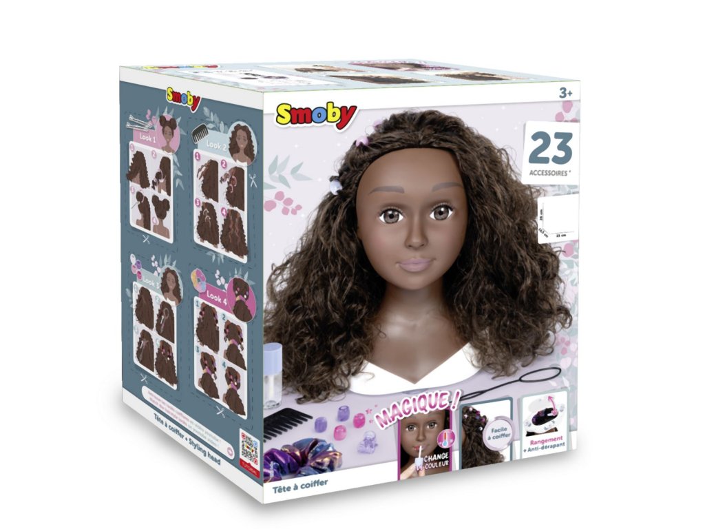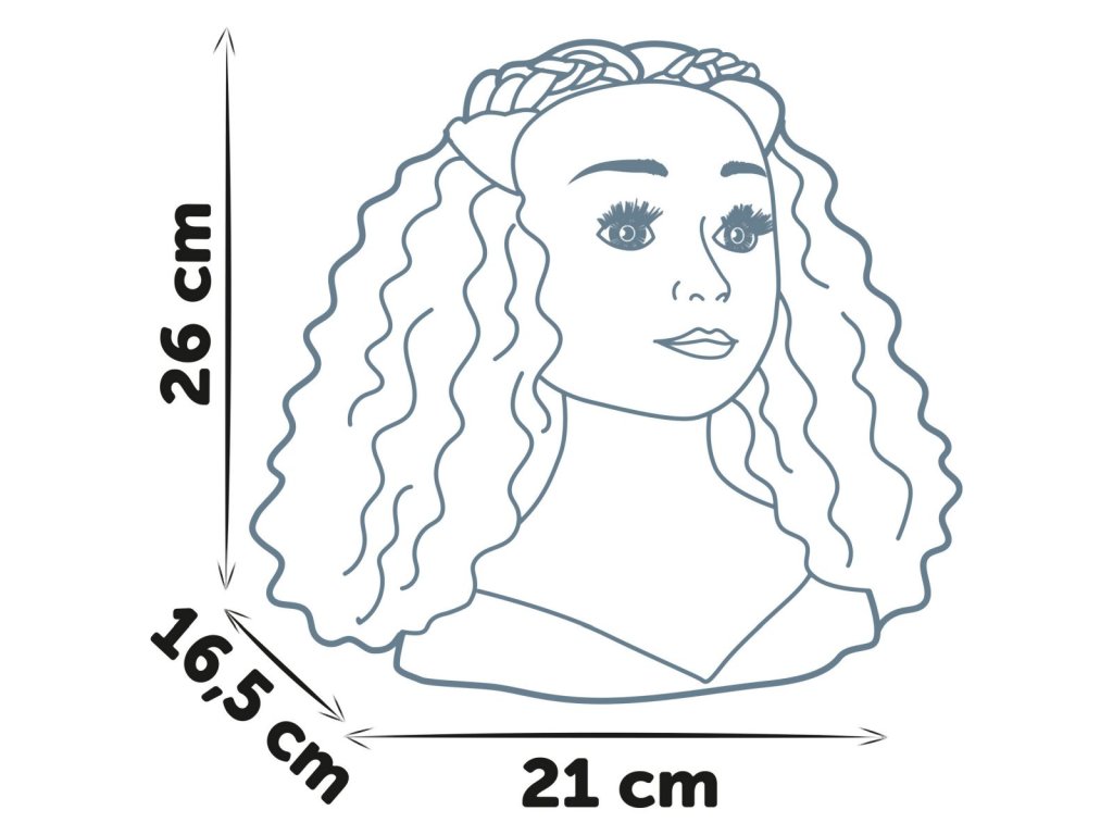 Česací hlava pro vytváření trendy účesů. S magickou funkcí, použij přiložený štěteček na rty namočený do studené vody a rty se krásně vybarví. Obsahuje 23 ks doplňků, které můžeš uschovat v tajné skrýši v podstavci hlavy. Vybaveno přísavkami na spodní části podstavce pro lepší stabilitu. Výška hlavy 26 cm.Doplňkové parametry