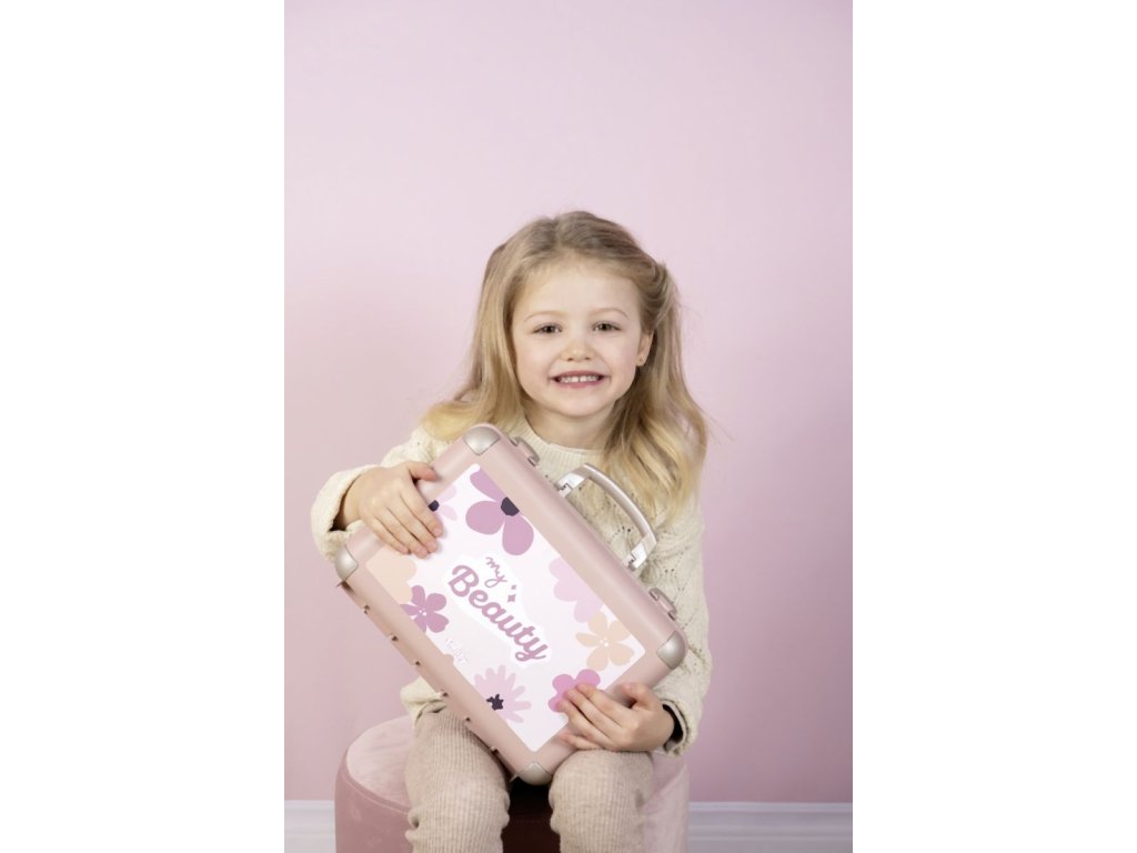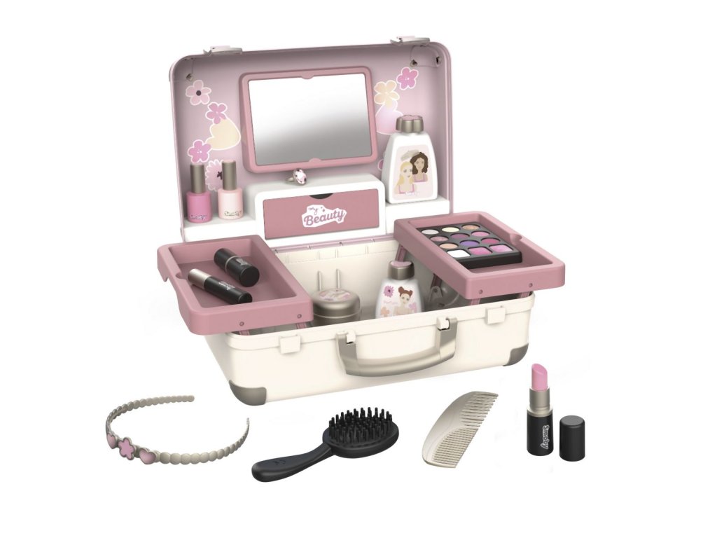 Kosmetický kufřík My Beauty je naplněn vším, co je potřeba pro skvělé mobilní wellness, ať už jde o účes, nehtový salon nebo make-up. Všech 13 doplňků (atrapy kosmetiky ke hraní) najdete uvnitř kufříku s rukojetí, který lze vzít kamkoli: 2 laky na nehty, 2 rtěnky, paleta očních stínů, řasenka, hřeben, čelenka, prsten a různé lahvičky. Díky možnosti zamčení se na cestě z kufříku nic neztratí. Navíc má zrcadlo a tajnou přihrádku. Police uvnitř lze sklopit, pro vytvoření prostoru pro další kosmetiku. Rozměry produktu (DxŠxV): 28 x 35 x 28 cm.Doplňkové parametry