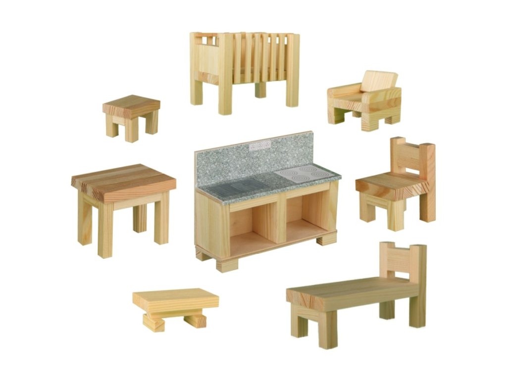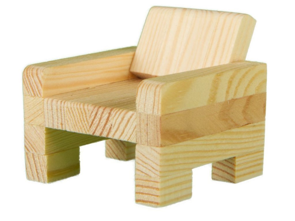 Sestavte si svůj pokoj v miniaturním provedení. S dřevěnou slepovací stavebnicí si můžete vytvořit křeslo, židle, stůl nebo i dětskou postýlku. Ve stavebnicích CREATIVE KITS naleznete jednoduchý obrázkový návod se symboly jednotlivých úkonů, přesně zhotovené hranoly z borového dřeva o rozměru 9×9 mm v délkách od 16 do 230 mm, překližku tl.3 mm a papírový potisk. Jednotlivé díly se slepují lepidlem na dřevo a papír (není obsahem).Doplňkové parametry