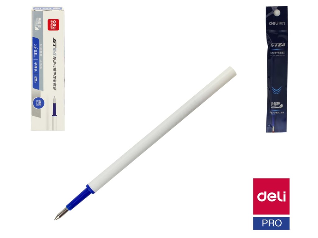 Náplň do mazací propisky modrá DELI: - náplň do gumovací propisky gelová- barva: modrá- šíře stopy: 0,5mm- délka: 110mm- vhodná do propisky A100162 DELI A667Doplňkové parametry