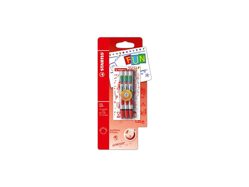 Náplň do kuličkového pera STABILO FUN 0,5mm / 3ks červená
