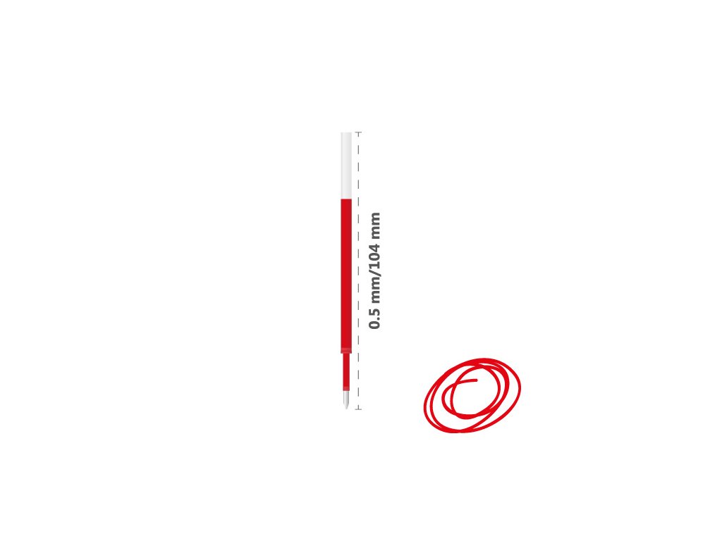 Náplň do gelového pera, průměr kuličky 0,5 mm, barva červená. Délka 104 mm.Doplňkové parametry