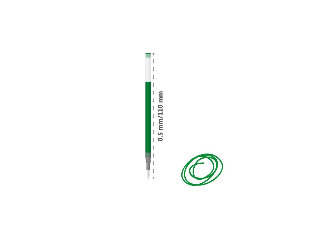 Gelová náplň do péra, zelená barva, délka 110 mm, průměr kuličky 0,5 mm.- náplň je kompatibilní s gumovací PILOT Frixion