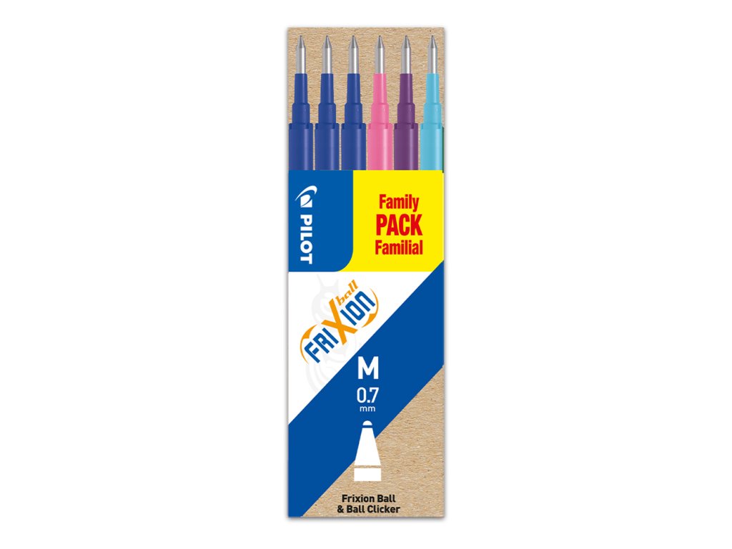Náplň Pilot Frixion - 3x modrá, 1x černá, 1x růžová a 1x světle modrá. Šířka stopy: 0,7 mm. Balení obsahuje 6 ks.Doplňkové parametry