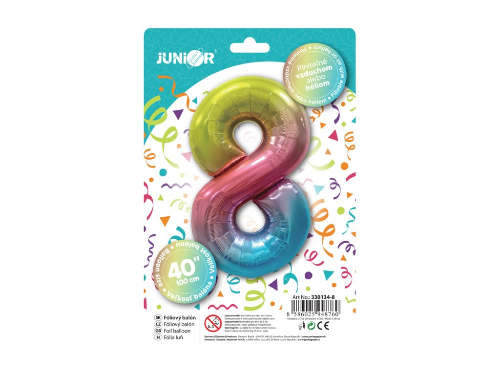 Narozeninový balónek, barevný 40" (100 cm) číslo 8