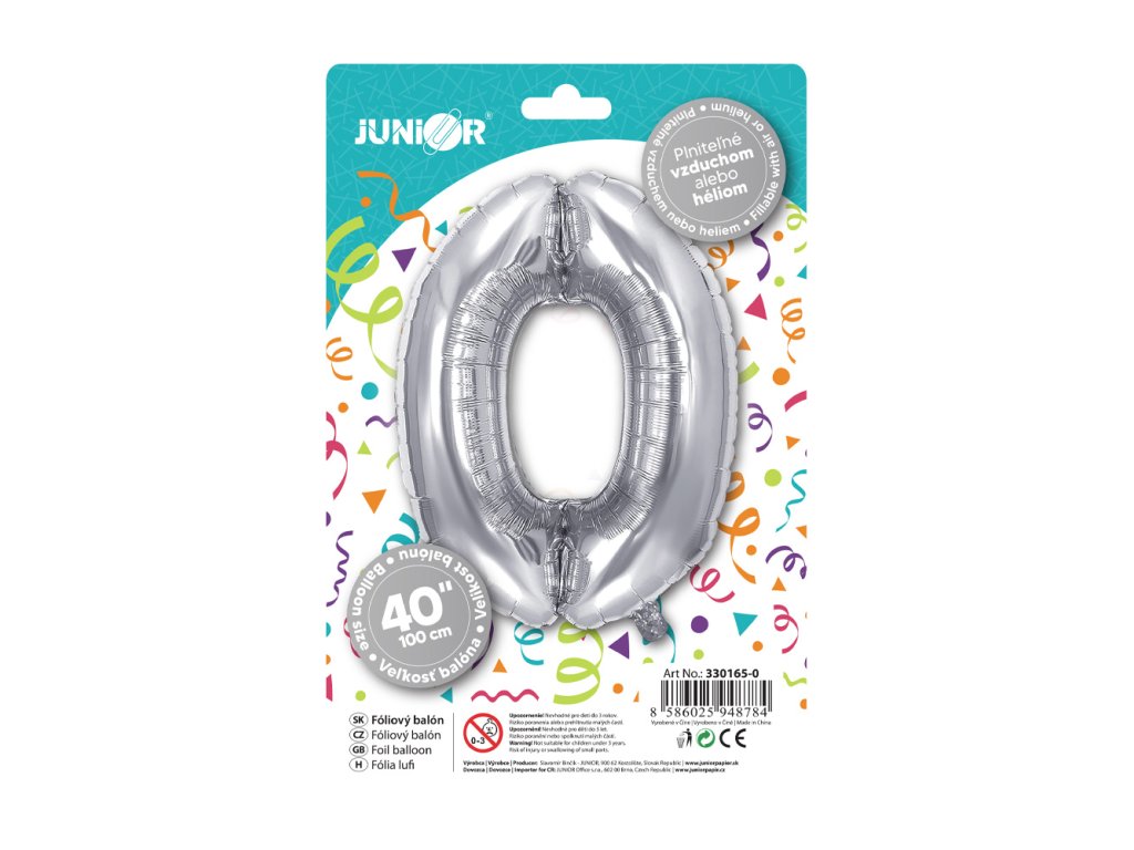 Narozeninový balónek, stříbrný 40" (100 cm) číslo 0