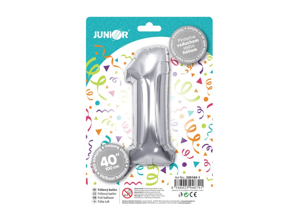 Narozeninový balónek, stříbrný 40" (100 cm) číslo 1