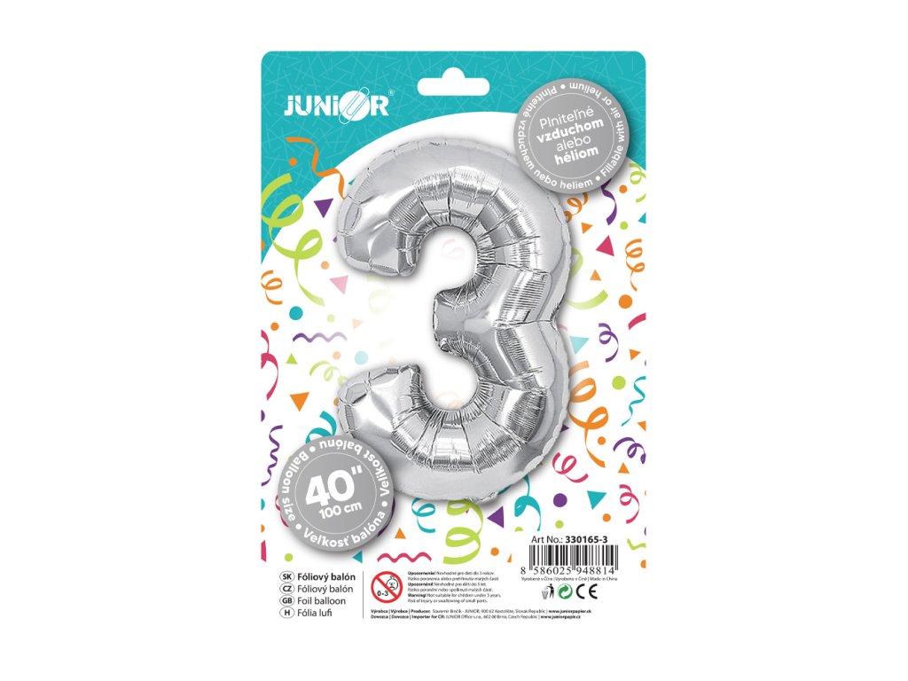 Narozeninový balónek, stříbrný 40" (100 cm) číslo 3