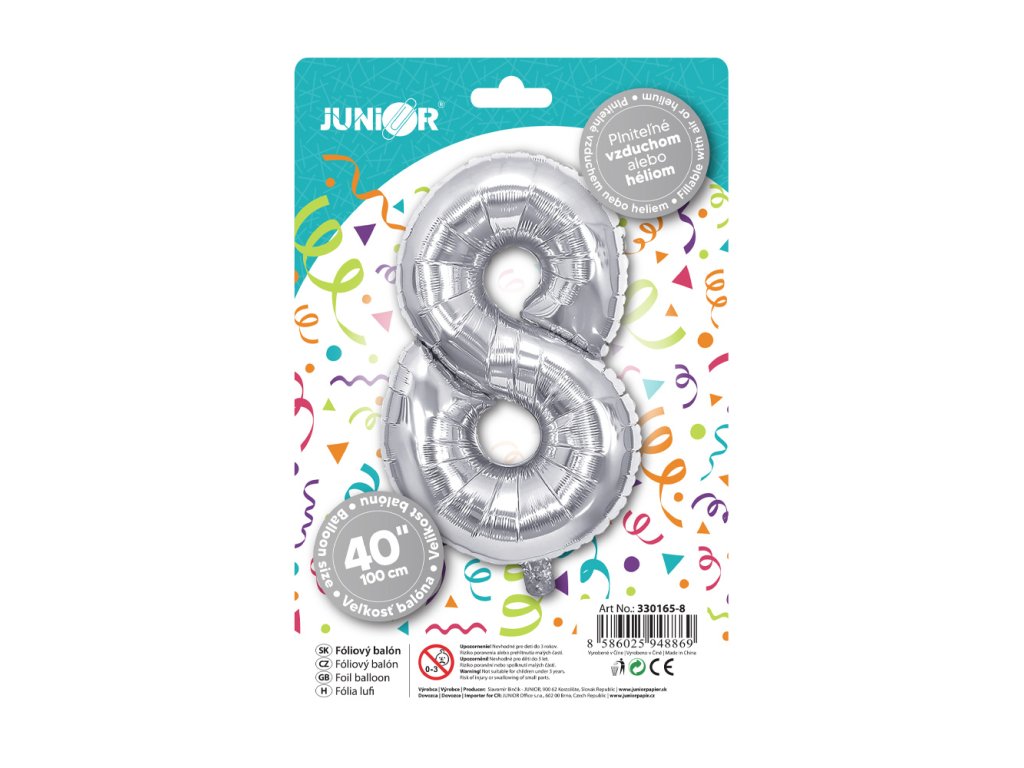 Narozeninový balónek, stříbrný 40" (100 cm) číslo 8