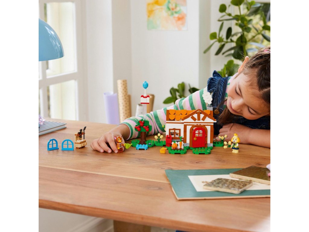 Se stavebnicí Návštěva u Isabelle (77049) ze světa videoherní série Animal Crossing™ se děti od 6 let pustí do vyprávění vlastních příběhů. Postaví si scény, které dobře znají ze svých obrazovek, a popustí uzdu fantazii! Děti se s Isabelle vydají na prohlídku Faunina domova. Interiér je zařízený do barev Fauny a najdete v něm spoustu známých i nových detailů, které děti inspirují k vymýšlení nových příběhů s oblíbenými postavami. Malí stavitelé mohou předstírat, že prakem zasáhli létající balónek, ke kterému je připevněný dárek. Poté zkontrolují, jestli na telefon nepřišly nějaké zprávy, vhodí dopis do poštovní schránky a pomůžou minifigurkám zalít zahradu a utrhnou si ze stromu jablíčko. Na pracovním stole najdou kartu s vlastními recepty a ve stromě objeví ukryté překvapení. Děti si vyberou, jak bude dům vypadat, a přemístí nábytek, vymění okna a přesunou podložky na stavění.Doplňkové parametry