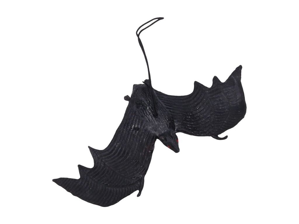 Gumový černý netopýr se po pověšení za připnuté poutko bude třepotat. Zábavná dekorace pro halloween a čarodějnickou výzdobu.Doplňkové parametry