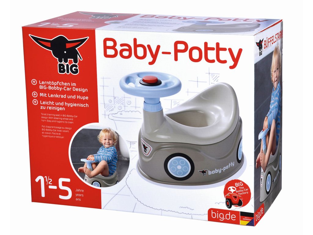 Nočník Big s volantem a s klaksonem. Vyšší opěrka zad, široká, stabilní základna. Barva šedá. Rozměry: 43 x 28 x 31 cm.Doplňkové parametry