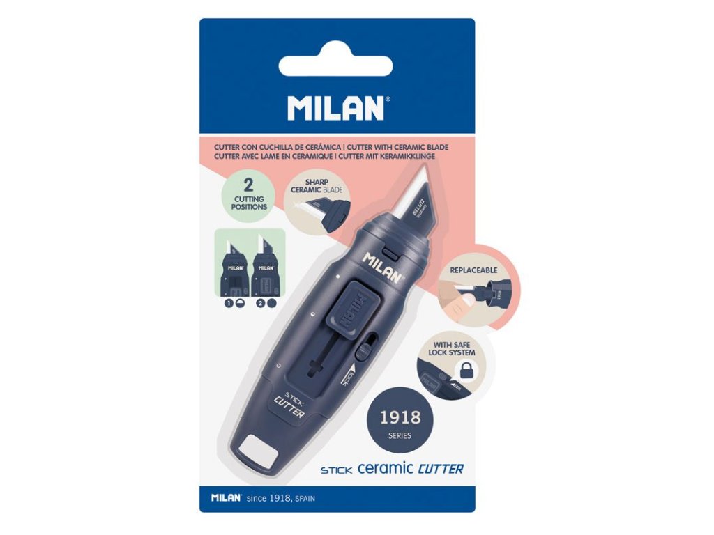 Ořezávací nůž Stick s kvalitní vyměnitelnou keramickou čepelí. - čepel s chráničem a bezpečnostním zámkovým systémem - posuvné tlačítko se dvěma polohami - malá kapesní velikost s otvorem pro zavěšení Díky svému ergonomickému designu je ideální pro ruční práce nebo otevírání balíčků.Doplňkové parametry