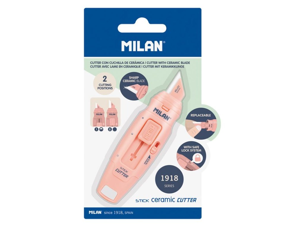Ořezávací nůž Stick s kvalitní vyměnitelnou keramickou čepelí. - čepel s chráničem a bezpečnostním zámkovým systémem - posuvné tlačítko se dvěma polohami - malá kapesní velikost s otvorem pro zavěšení Díky svému ergonomickému designu je ideální pro ruční práce nebo otevírání balíčků.Doplňkové parametry