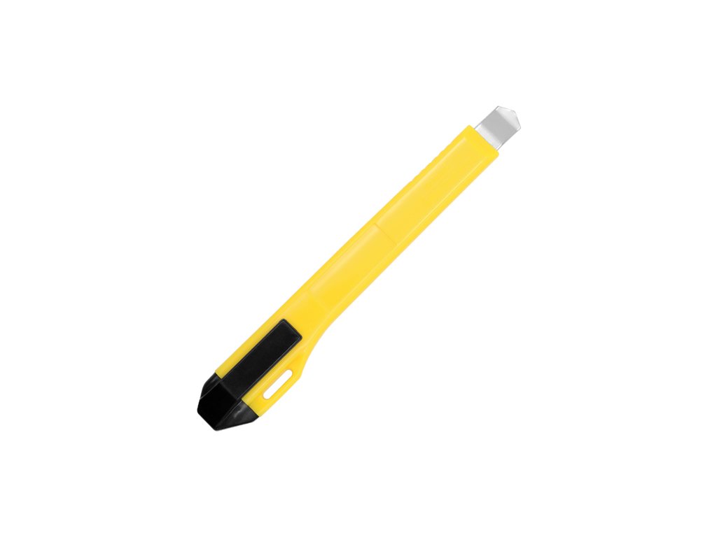 Malý ořezávací nůž s odlamovací čepelí, vysouvanou pomocí polohovacího jezdce se zarážkami z ušlechtilé oceli. Tělo a vysouvací mechanismus jsou kovové.Doplňkové parametry