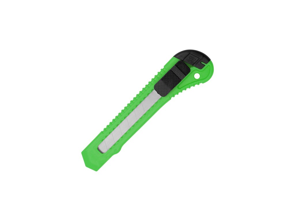 Velký ořezávací nůž s manuálně nastavitelnou vysouvací čepelí šírky 18 mm z ušlechtilé oceli, tělo nože z PVC. Vhodný na reklamní účely - lze jej potisknout. Volně baleno 48ks. Rozměr: 150x10x40mm.Doplňkové parametry