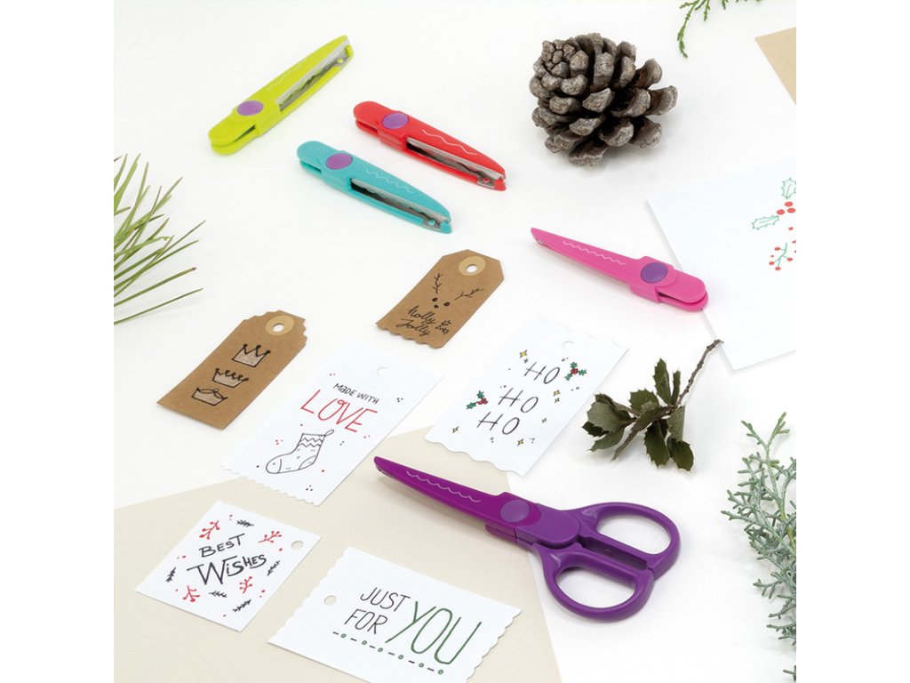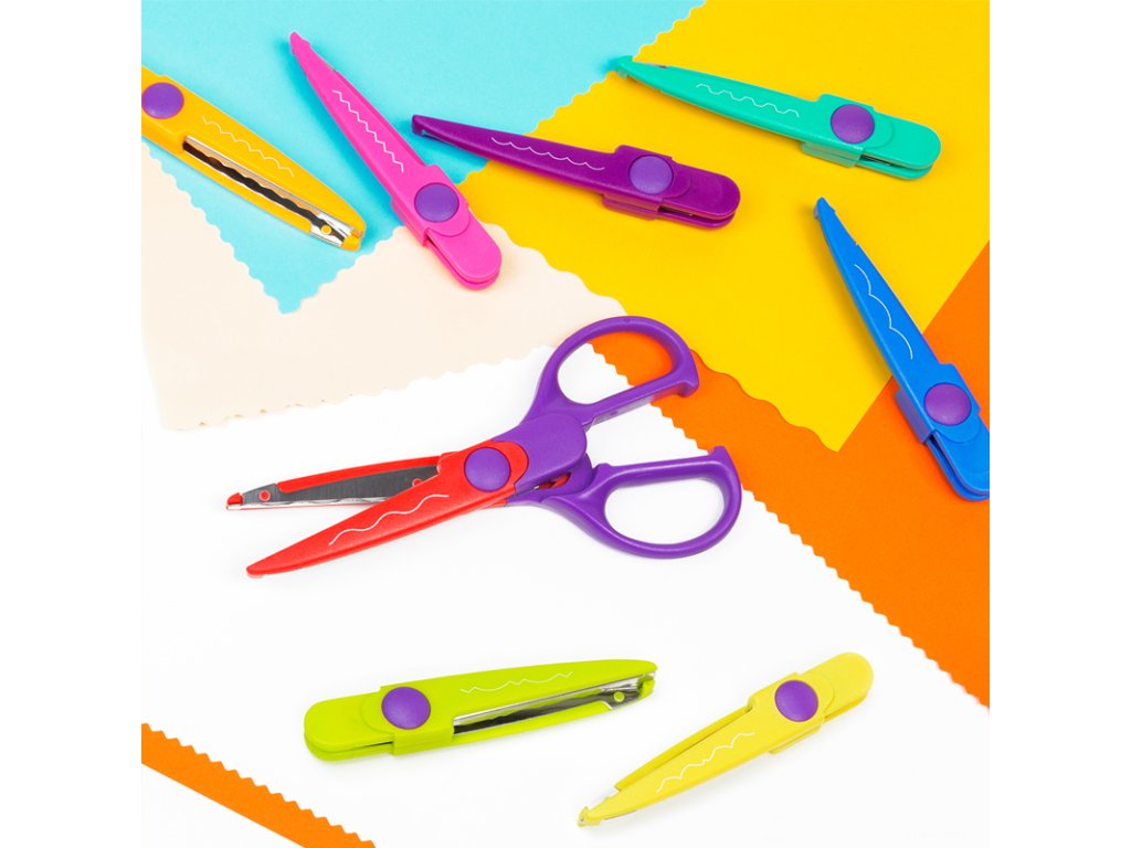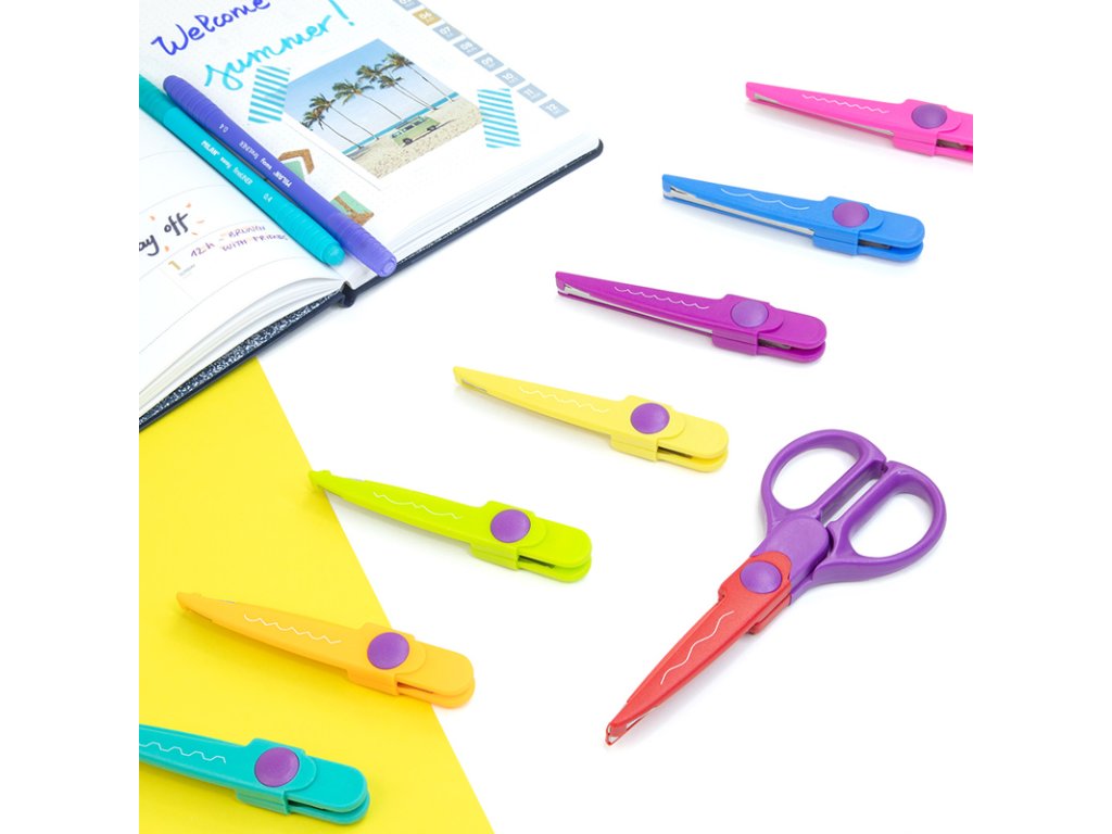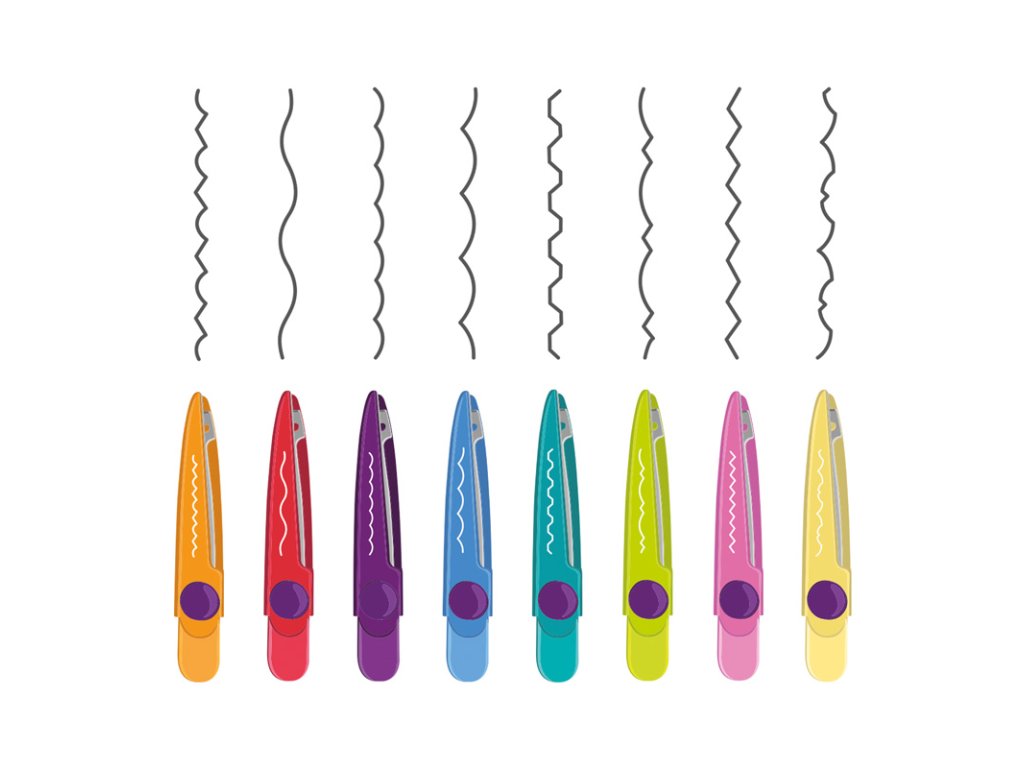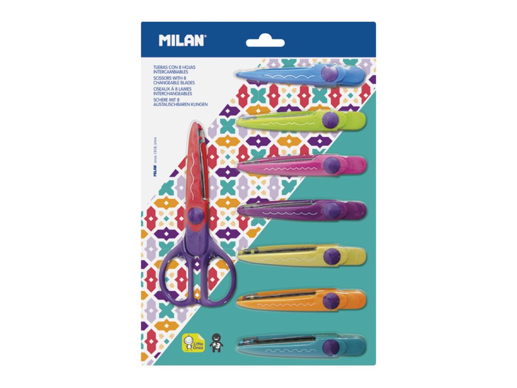 Nůžky ozdobné MILAN. Sada obsahuje 8 různých vyměnitelných ostří pro kreativní úpravy okrajů papíru.Doplňkové parametry