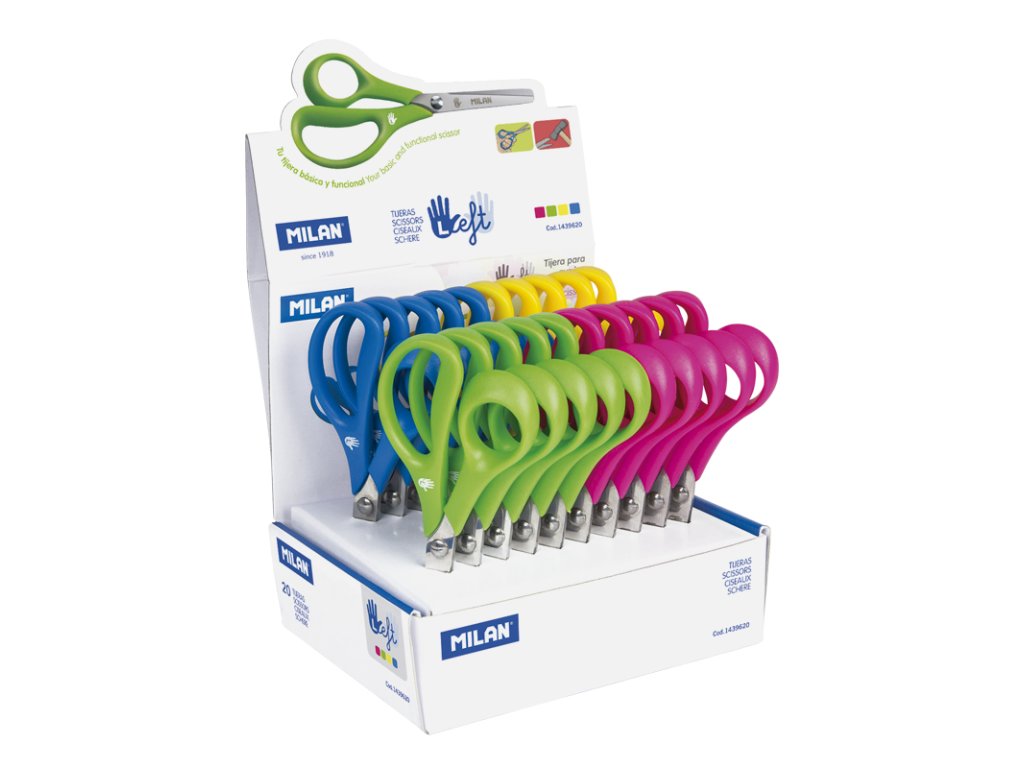 Školní nůžky se zaobleným koncem a čepelí z nerezové oceli, o celkové délce 14,5 cm, speciálně vyvinuté pro leváky. Nárazuvzdorná rukojeť nůžek je vyrobena z příjemného materiálu a zajišťuje pohodlné uchopení díky ergonomickému tvarování. Možný výběr ze čDoplňkové parametry