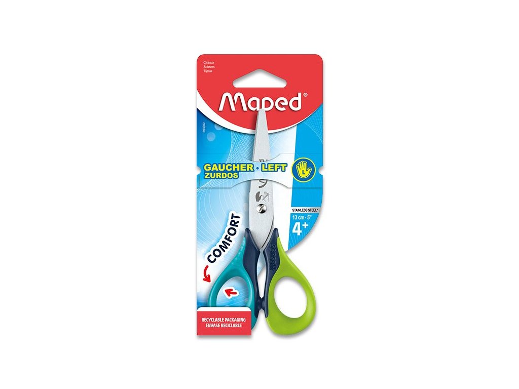 Nůžky Maped Sensoft pro leváky 13 cm. Kvalitní nůžky pro leváky, vhodné do školy i kanceláře. Mix barev - modré, žluté, růžové.Doplňkové parametry
