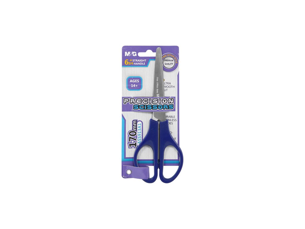 Kancelářské nůžky Office Precision M & G s ergonomicky tvarovanou plastovou rukojetí pro pohodlný úchop. Čepel nůžek z kvalitní nerezavějící oceli. Délka čepele 90 mm. Kvalitní, cenově dostupné nůžky.Doplňkové parametry