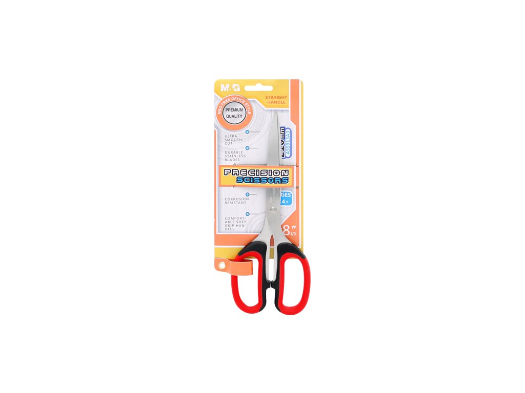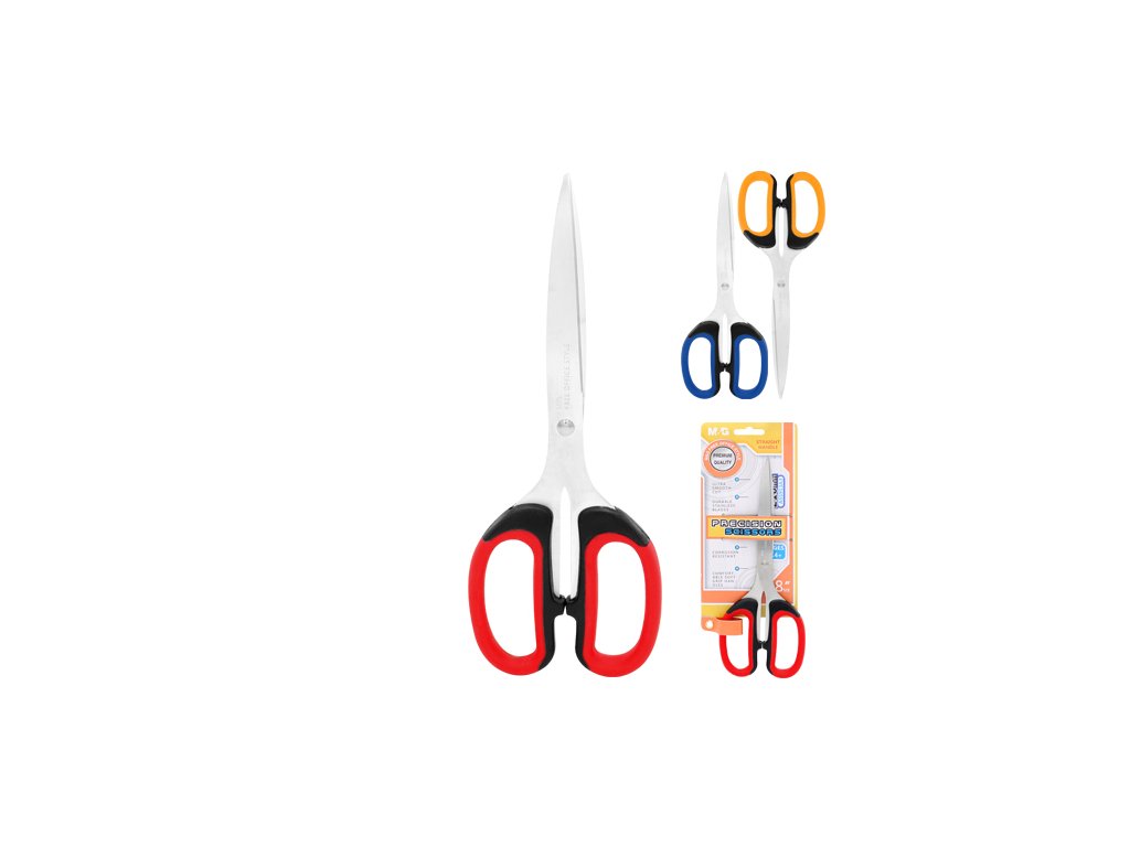 Kancelářské nůžky Office Precision Premium M&G s ergonomicky tvarovanou pryžovou rukojetí pro komfortní úchop. Čepel nůžek z kvalitní nerezavějící oceli. Délka čepele 85 mm. Dostupné ve třech barevných provedeních.Doplňkové parametry