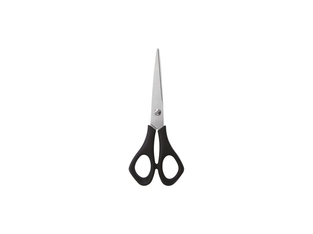 Nůžky s asymetrickými rukojeťmi z PVC, dodávané na blistru. Rozměr: 145x55mm, 60mm čepel.Doplňkové parametry