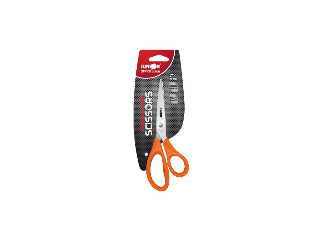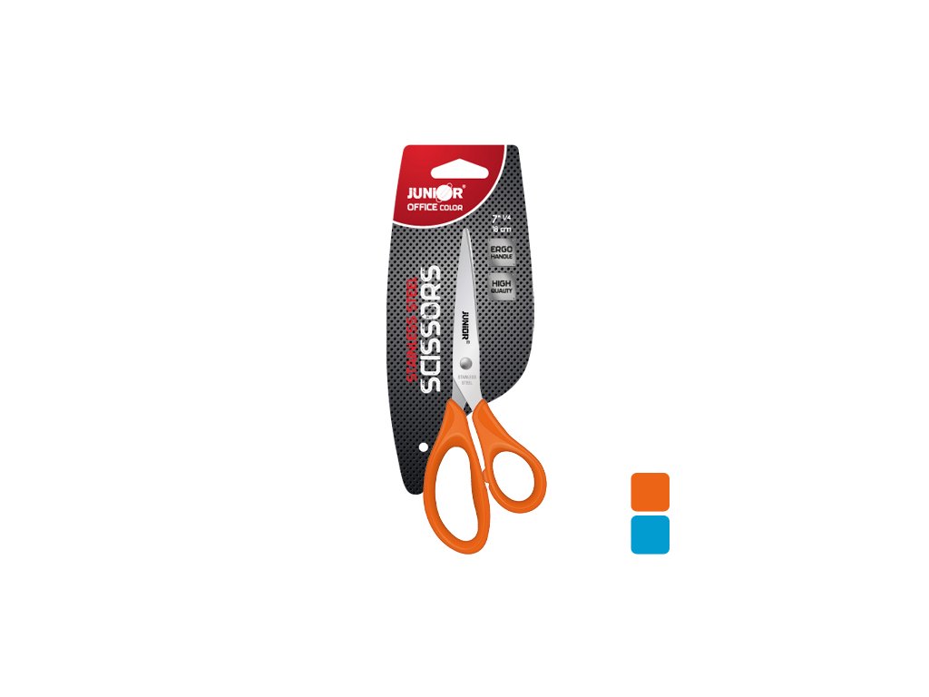 Kancelářské nůžky s ergonomicky tvarovanou plastovou rukojetí pro pohodlný úchop. Čepel nůžek z kvalitní nerezavějící oceli. Délka čepele 70mm. Kvalitní, cenově dostupné nůžky, které firma JUNIOR nabízí pod vlastní značkou.Doplňkové parametry