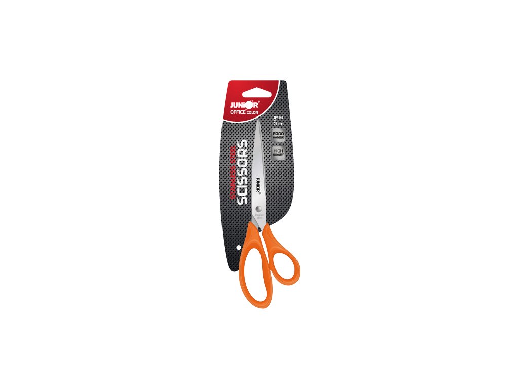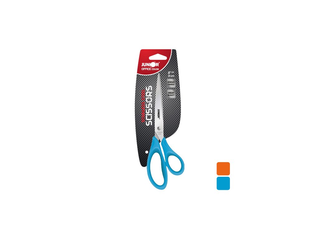 Kancelářské nůžky s ergonomicky tvarovanou plastovou rukojetí pro pohodlný úchop. Čepel nůžek z kvalitní nerezavějící oceli. Délka čepele 80mm. Kvalitní, cenově dostupné nůžky, které firma JUNIOR nabízí pod vlastní značkou.Doplňkové parametry
