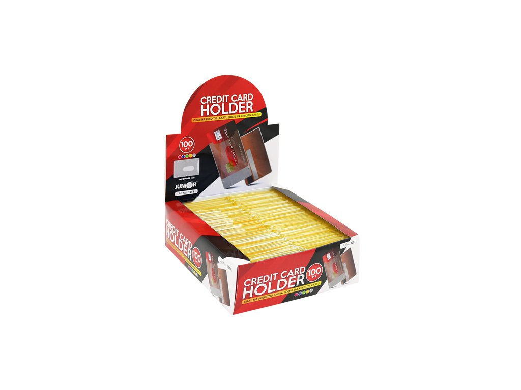 Obal na kreditní kartu z pevného průhledného PVC materiálu.