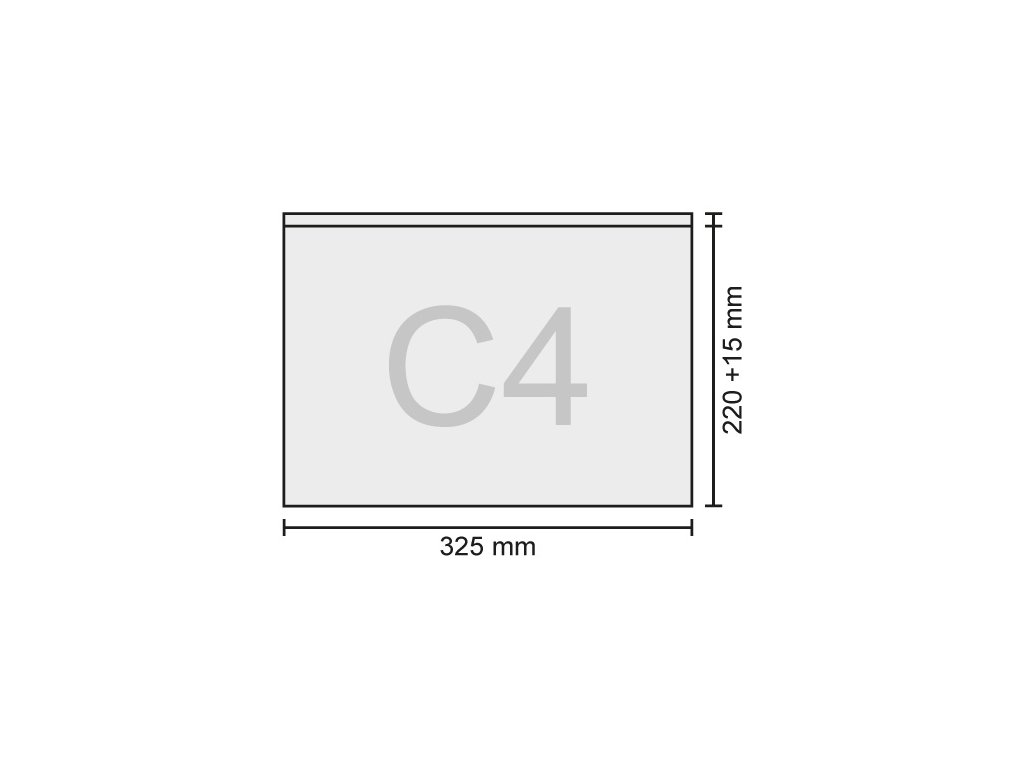 Transportní obálka C4 (325 x 220 +15 mm) slouží k viditelnému a bezpečnému přikládání dokumentů k zásilkám. Přední strana obálky je transparentní, zadní strana je opatřena samolepící vrstvou pro snadné a rychlé upevnění obálky k zásilce. Tyto obálky jsou odolné vůči povětrnostním vlivům. Na obálce je proužek se samolepicí vrstvou, sloužící k uzavření obálky. Balení 500 ks.Doplňkové parametry