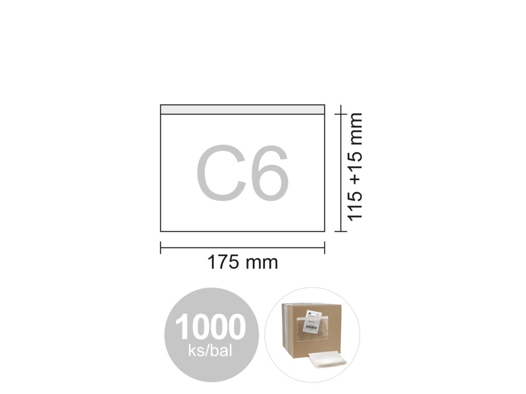 Nalepovací obálka na balíky - rozměr C6: 175x115+15mm. Matriál PP průhledný. Cena za balení - 1000 ks.Doplňkové parametry