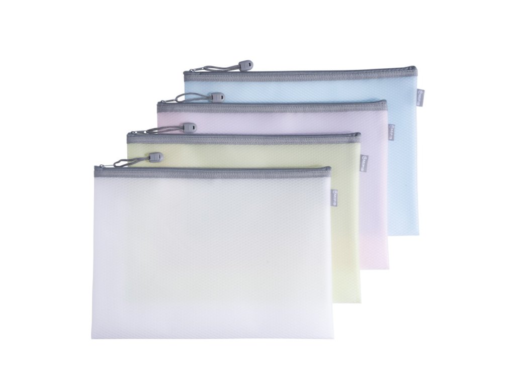 Praktická obálka v jemných pastelových barvách s uzavíráním na zip ve formátu A4.