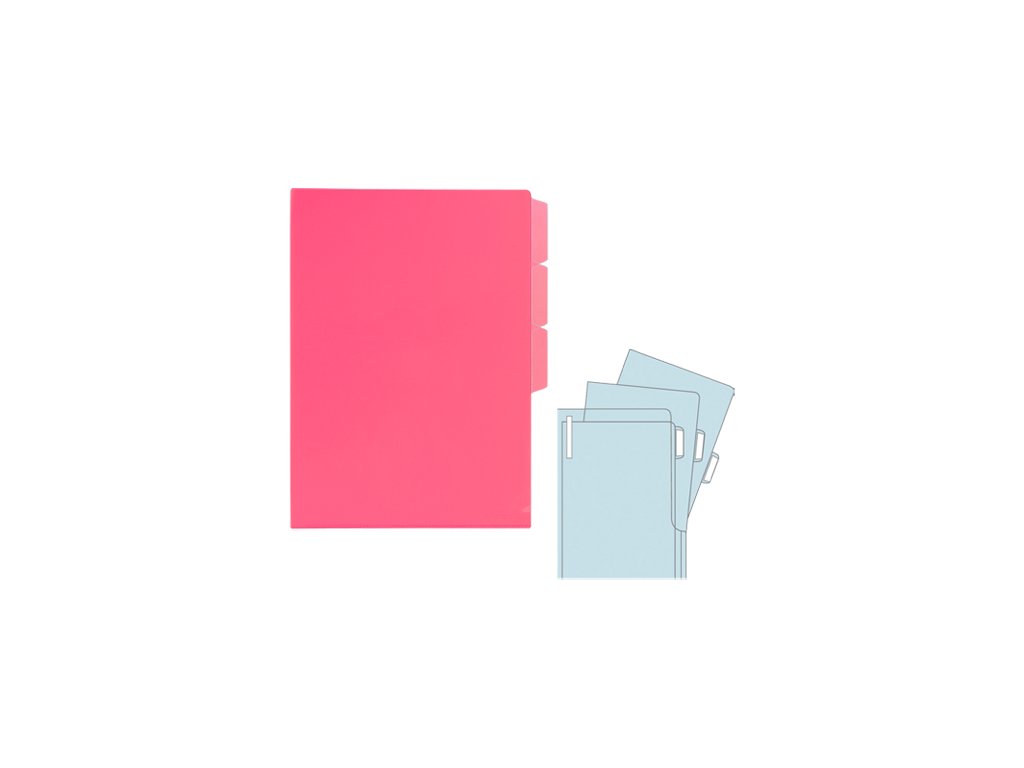 Sada pěti různých druhů oblaů na dokumenty formátu A4 v jednom balení, vyrobených z vysoce kvalitního transparentního poypropylému růžové barvy.Doplňkové parametry