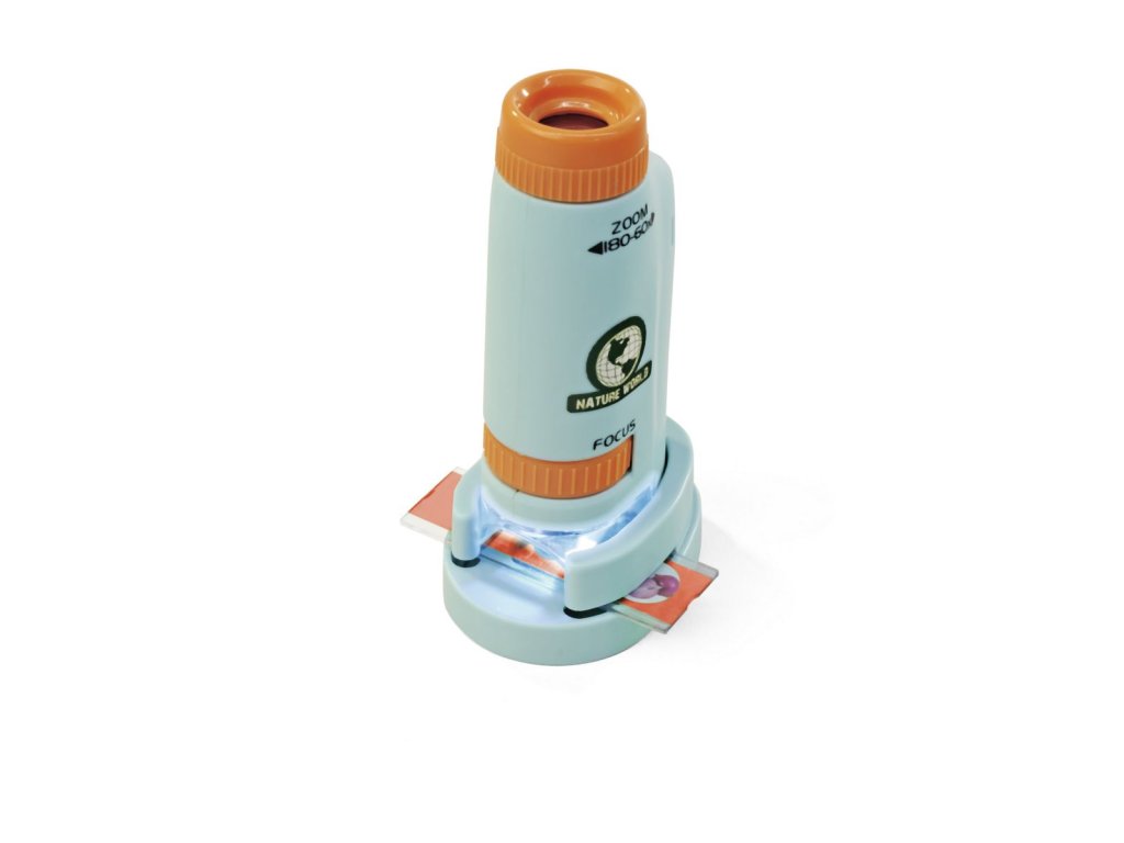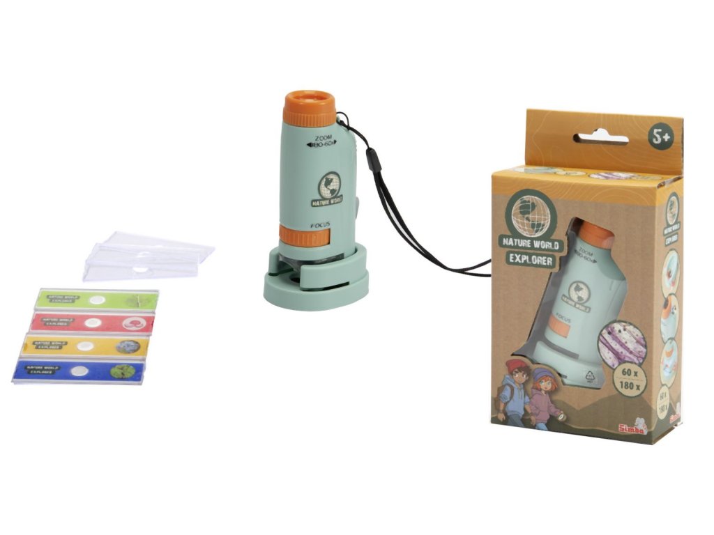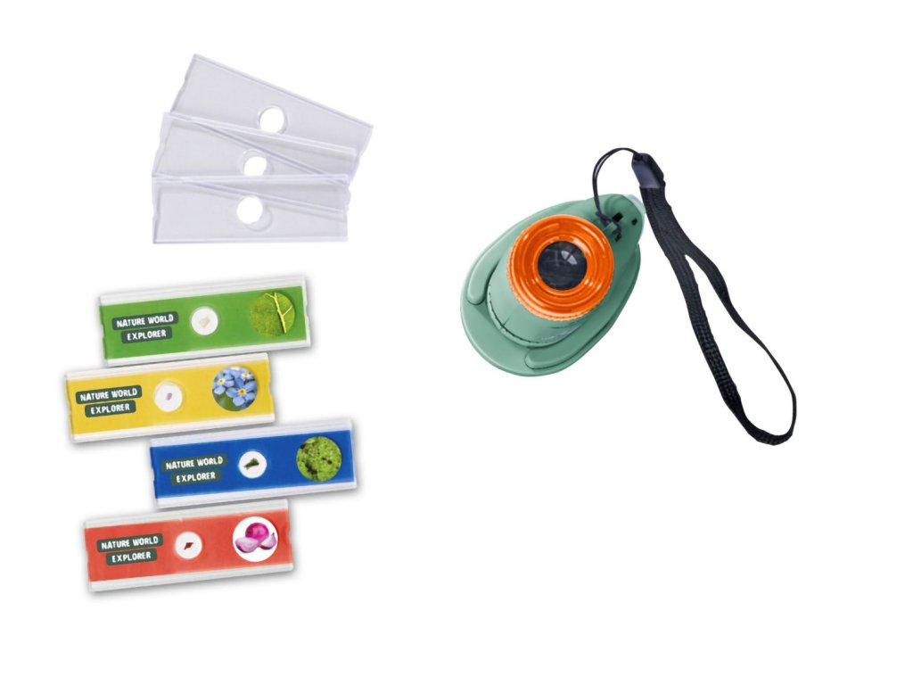 Kapesní mikroskop se světlem se zvětšením 60-180x. Obsahuje 4 ukázkové sklíčka s preparáty a 3 prázdná sklíčka. Velikost mikroskopu 11 cm.Doplňkové parametry