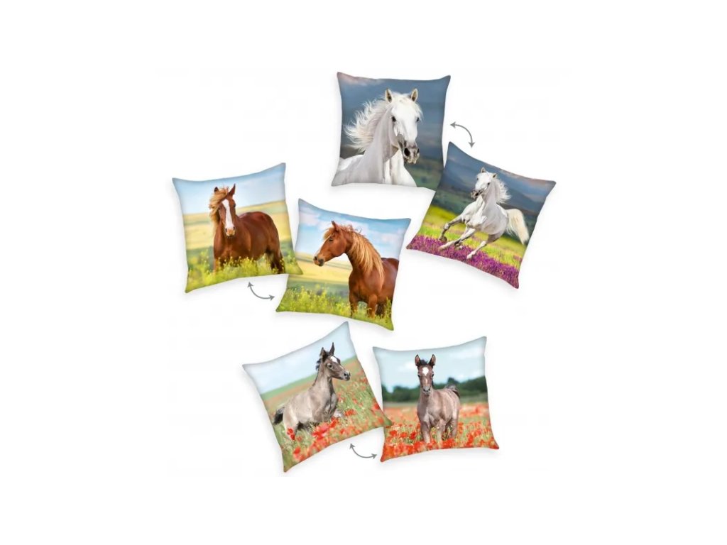 Polštářek s motivem majestátních koní bude dělat vždy a všude radost všem milovníkům těchto zvířat. Materiál, ze kterého je polštářek vyroben, je příjemný na dotek. Polštářek je včetně výplně.• kvalitní vypracování, stálobarevný materiál
