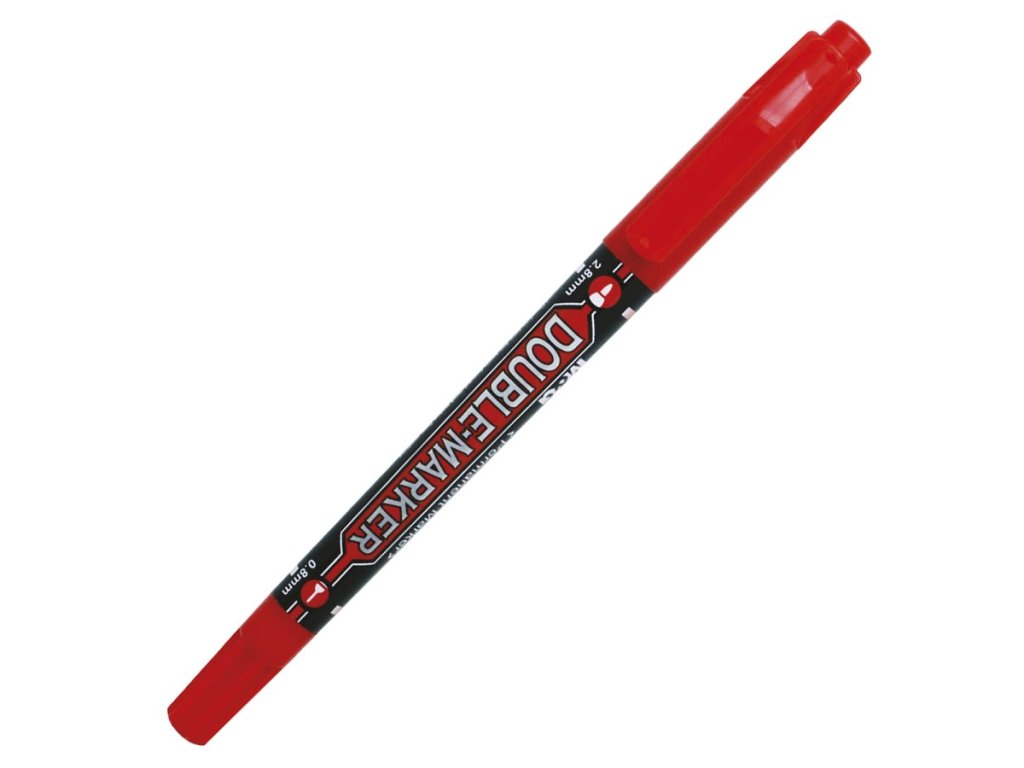 Oboustranný popisovač, 0,8mm + 2,8mm, červený