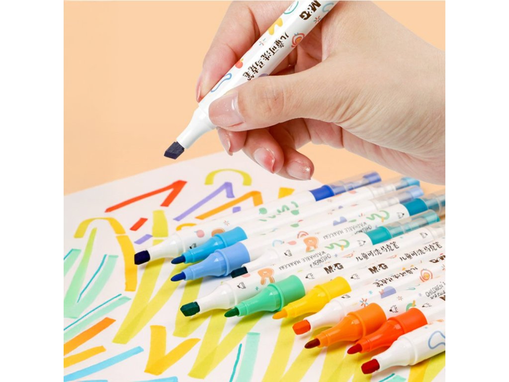 Oboustranný popisovač M&G pro děti, snadno omyvatelný - sada 12 barev