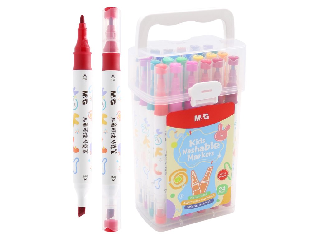 Oboustranný popisovač M&G pro děti, snadno omyvatelný - sada 24 barev
